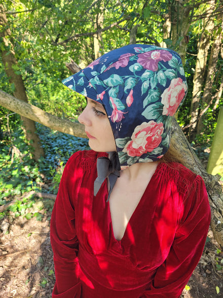 This perfect little "Charmante" hood with peak is made from lightly waxed cotton: